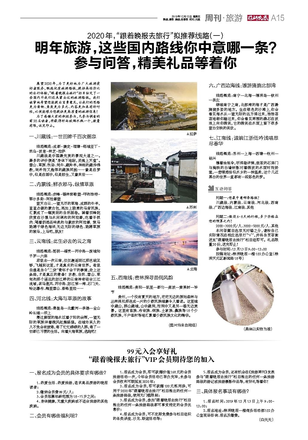 99元入会享好礼 “跟着晚报去旅行”VIP会员期待您的加入