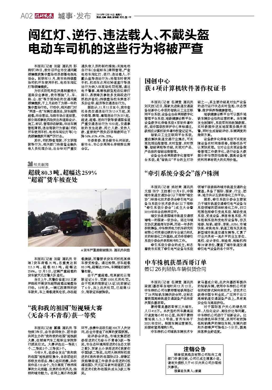 2019年12月14日《株洲晚报》