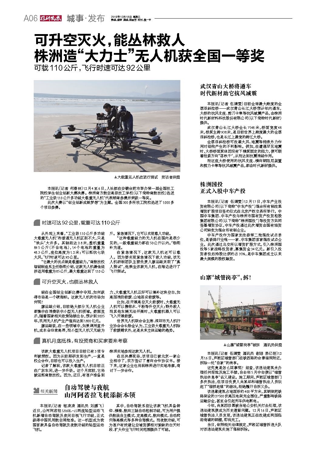 可升空灭火,能丛林救人 株洲造“大力士”无人机获全国一等奖