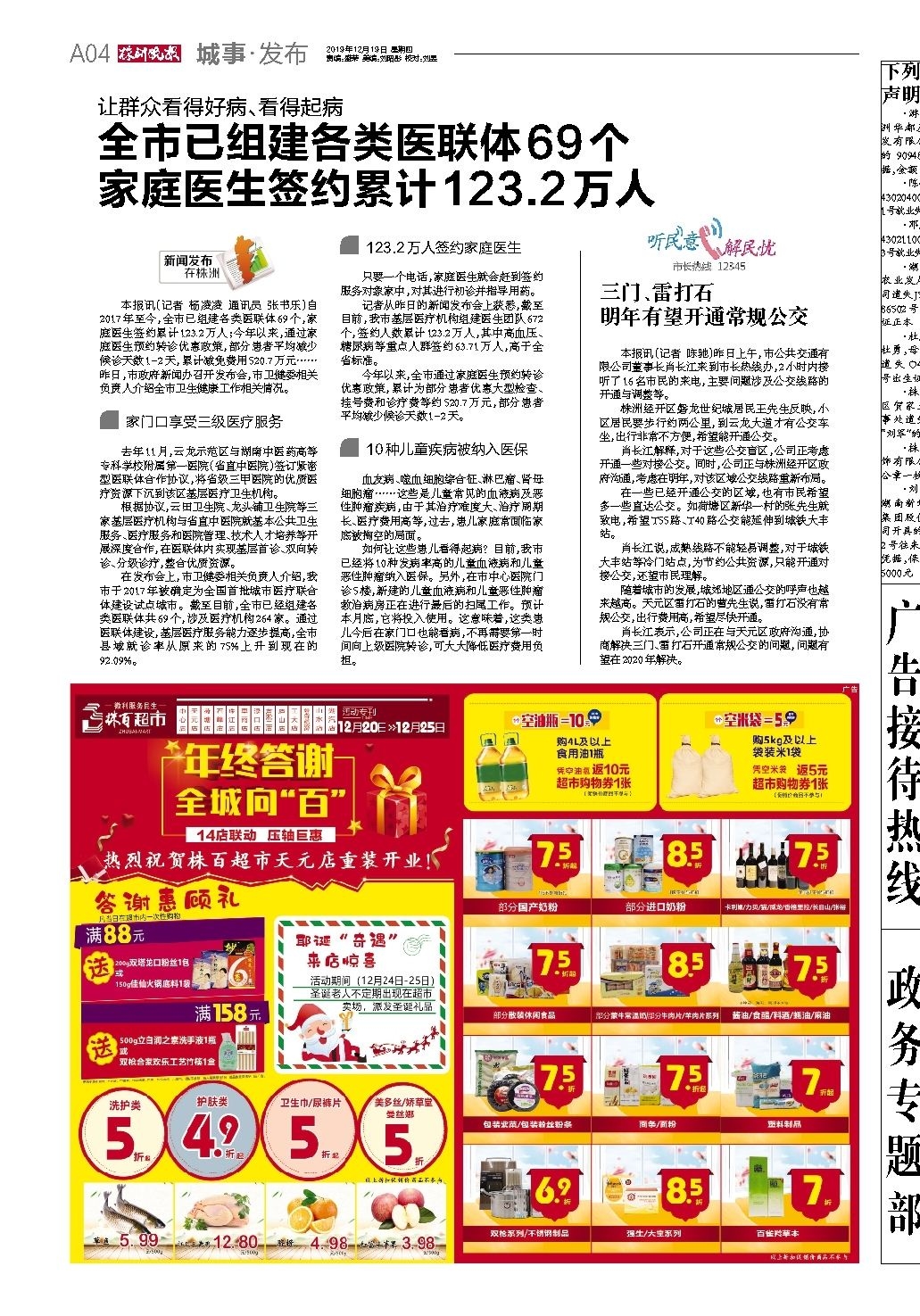 2019年12月19日《株洲晚报》