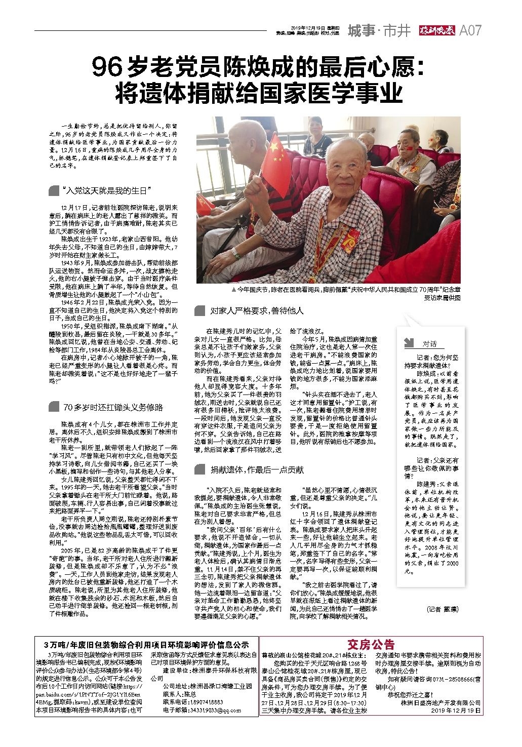 96岁老党员陈焕成的最后心愿: 将遗体捐献给国家医学事业
