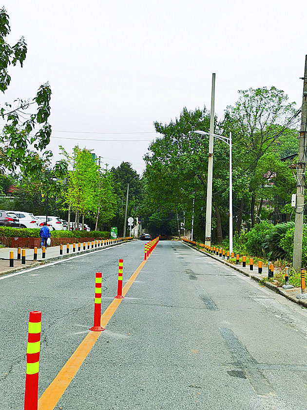 ▲石峰区曹家巷路莱茵小镇路段如今已见不到违停占道现象 通讯员供图