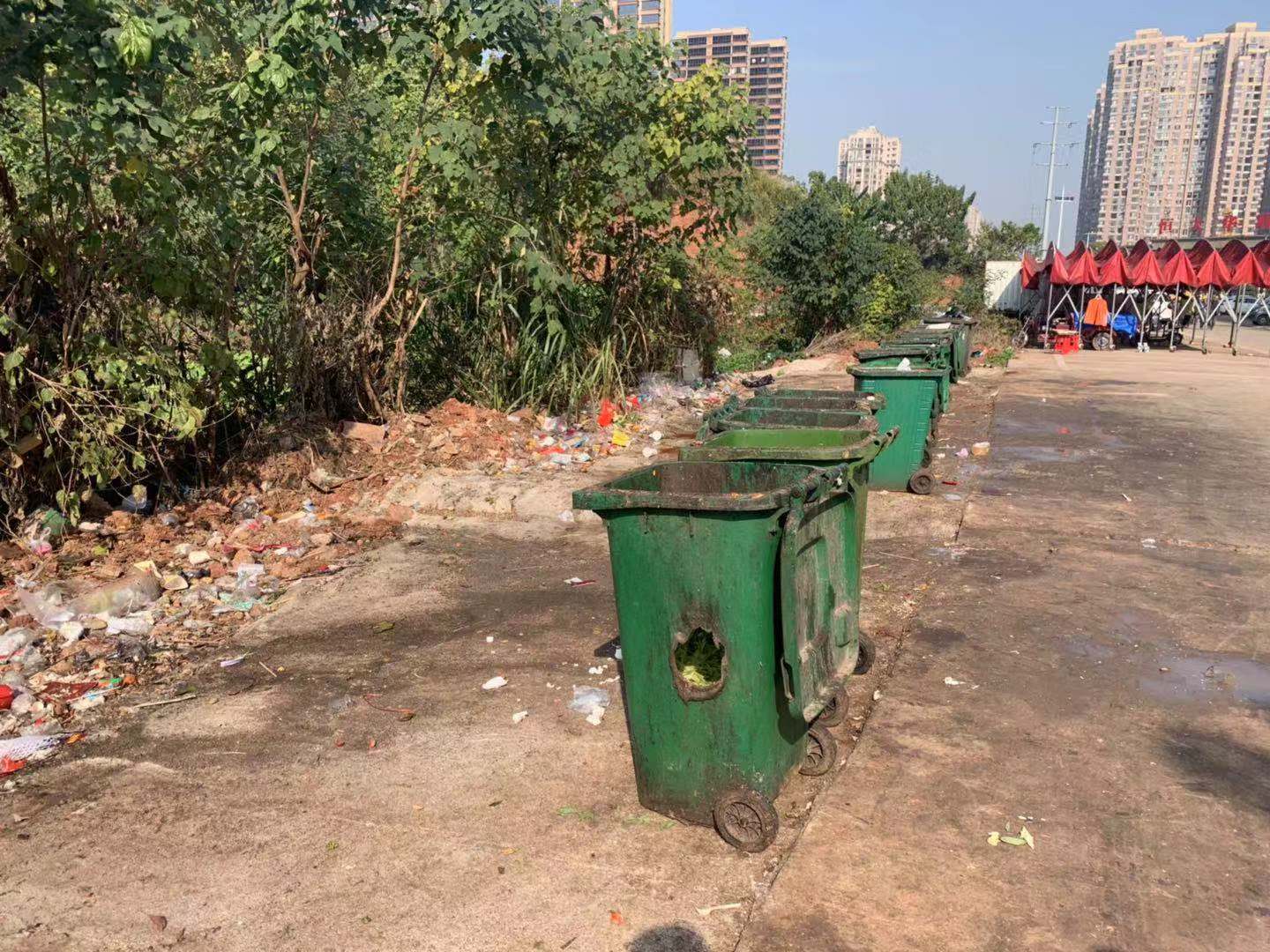 昨天上午,记者来到现场发现,现场堆放了很多垃圾桶,但是仍有很多垃圾四散在周围,其中不但有生活垃圾,还有一些建筑垃圾。而且,现场堆放的垃圾桶很多存在破损,污水往外流,周围地面湿滑,气味难闻。对此,路过的学生表示,此处一直没有得到有效的管理,这样的状况已经持续了很久。