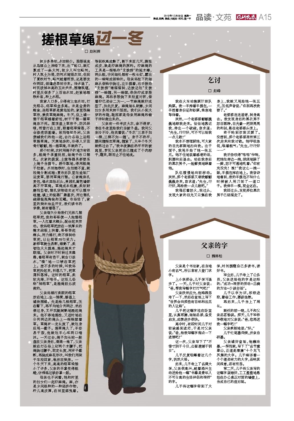 父亲铺好宣纸,饱蘸浓墨,一挥而就,写下了“名节重泰山,正道是清廉”十个龙飞凤舞的大字。儿子端详着一个个遒劲有力的大字,品味其间深意,若有所思。