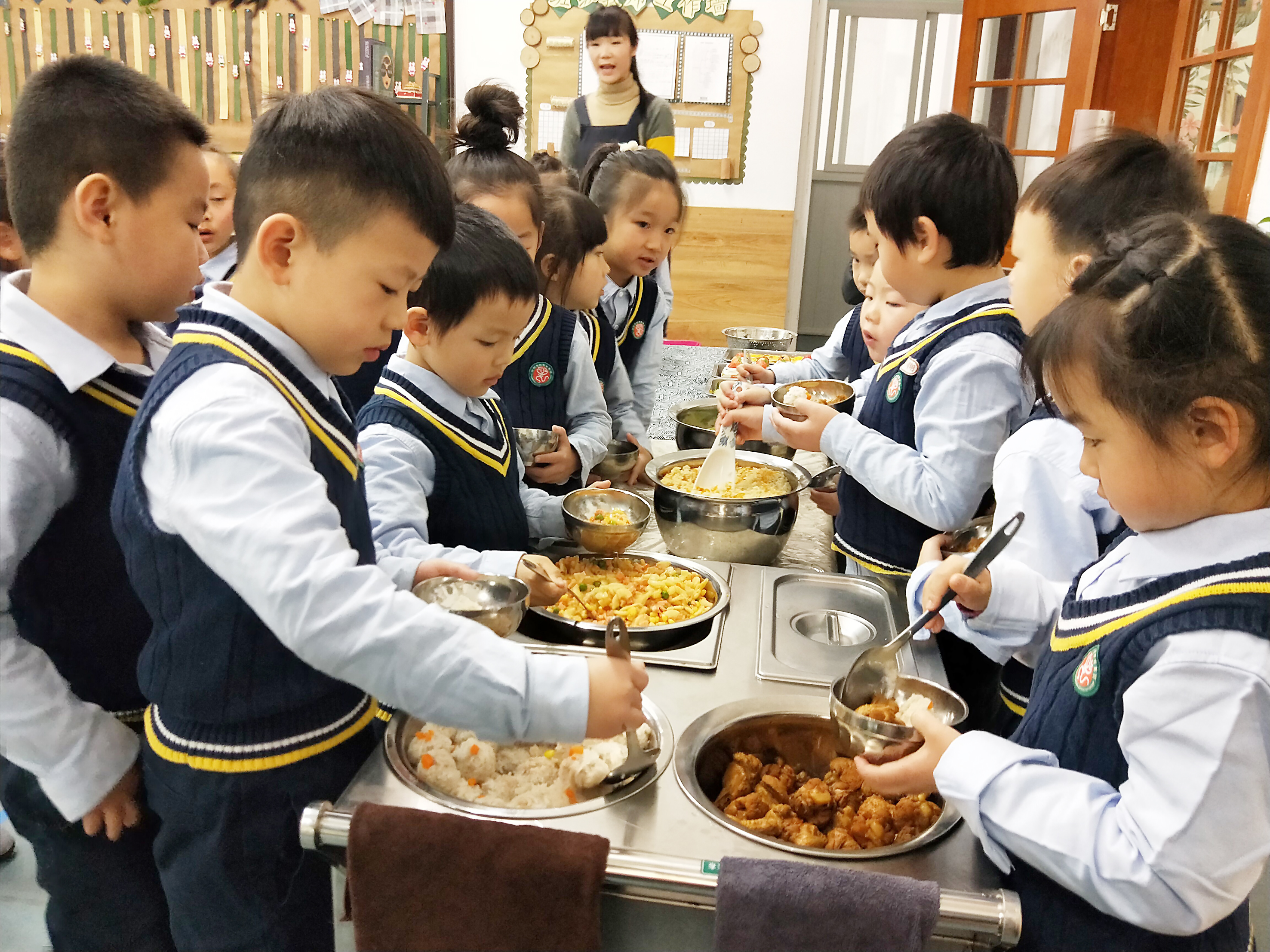 ▲9日中午,市幼儿园大二班小朋友在享受自助餐 记者 何春林 摄