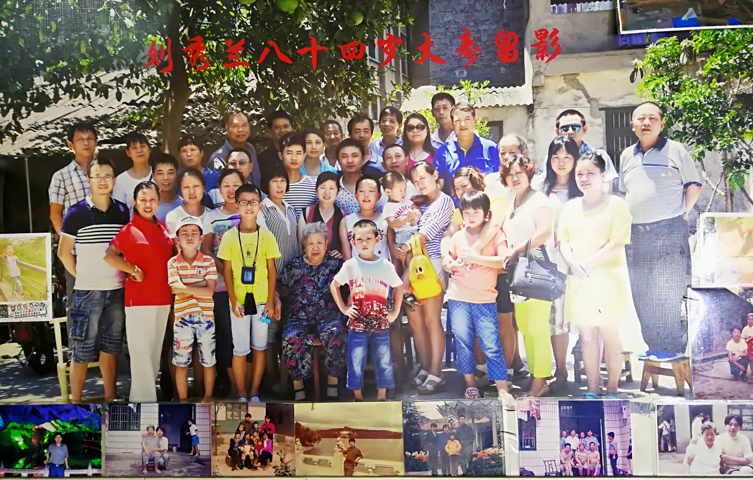 ▲刘秀兰老人84岁大寿时拍的全家福 记者 李卉 翻拍