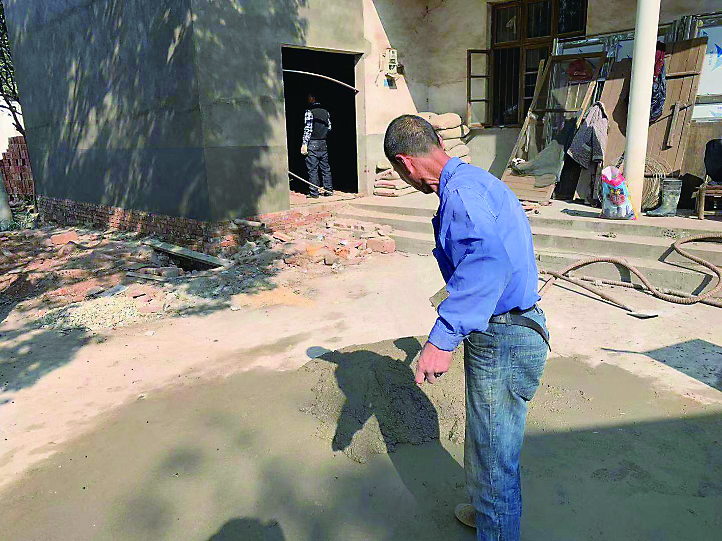 ▲周树军正在准备重建房子 记者 贺天鸿 摄