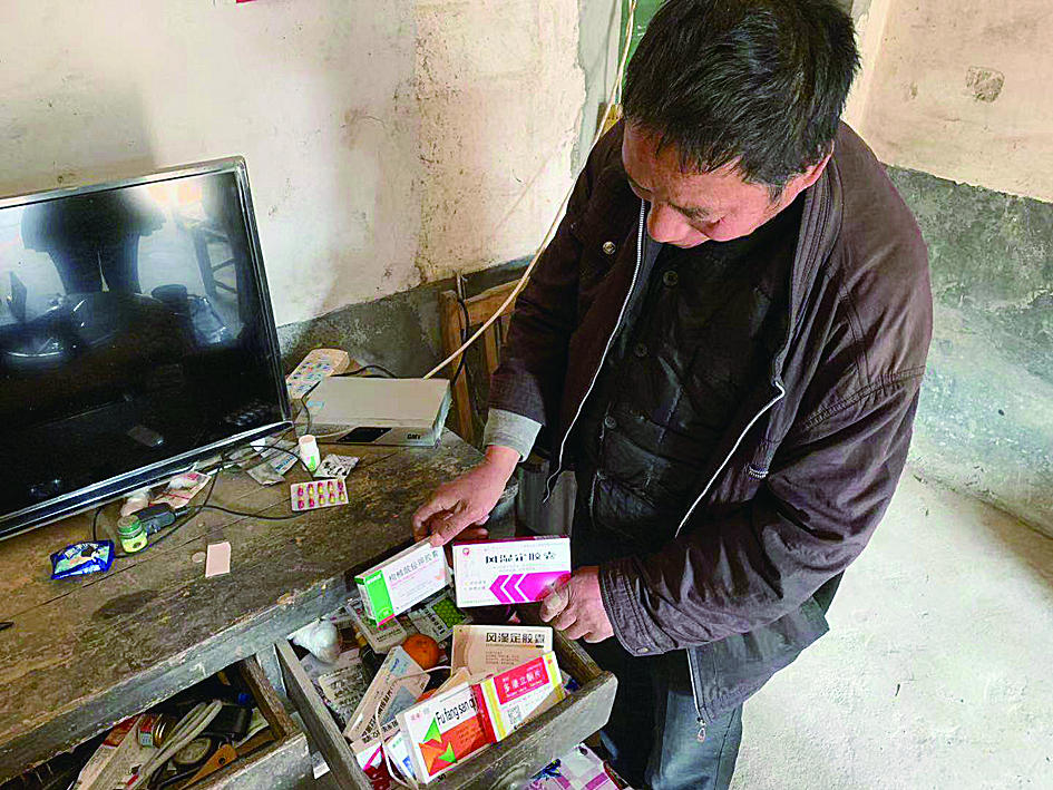 ▲黄德良家的抽屉里堆了各种药物 记者 贺天鸿 摄