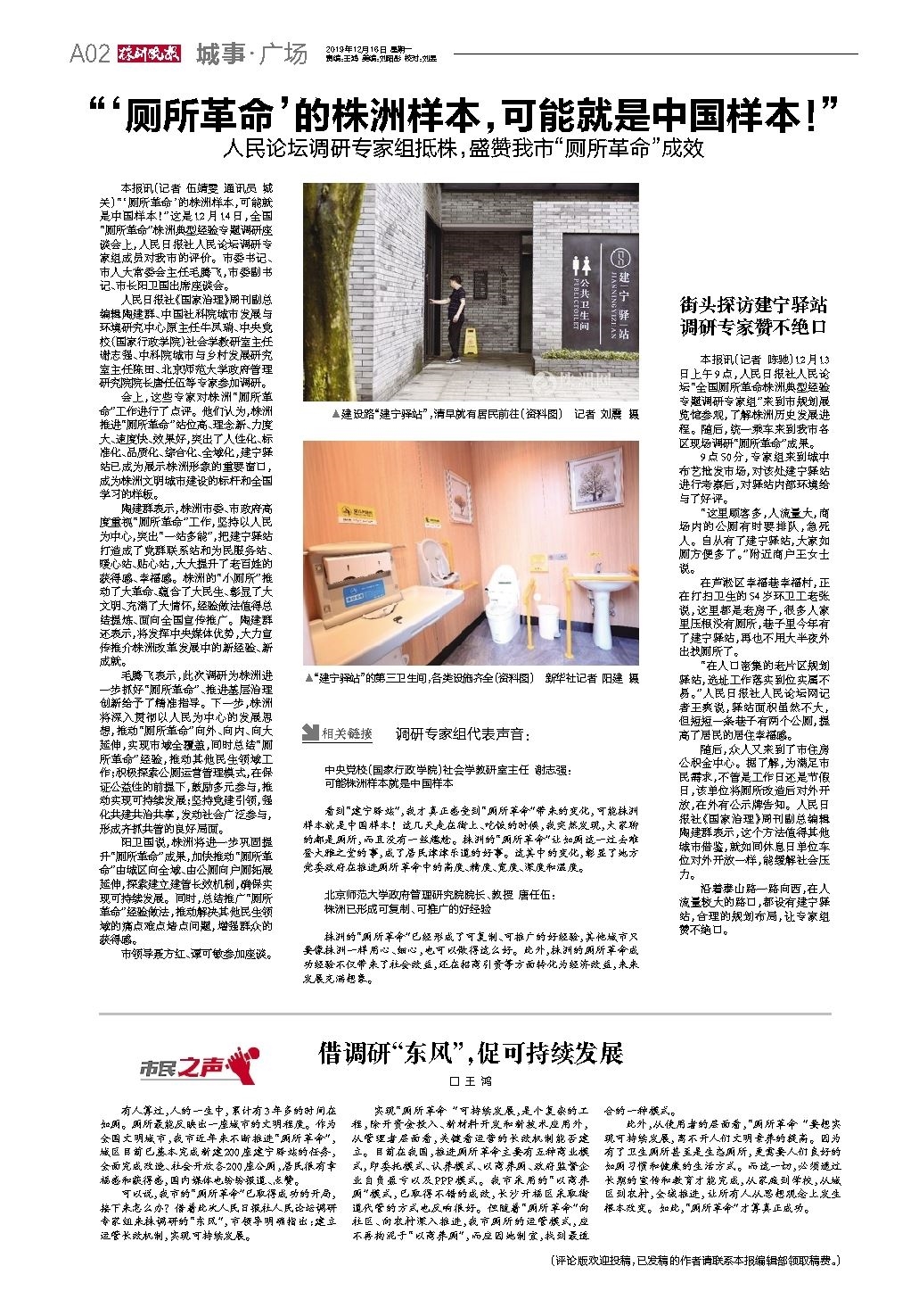 本报讯(记者 陈驰)12月13日上午9点,人民日报社人民论坛“全国厕所革命株洲典型经验专题调研专家组”来到市规划展览馆参观,了解株洲历史发展进程。随后,统一乘车来到我市各区现场调研“厕所革命”成果。