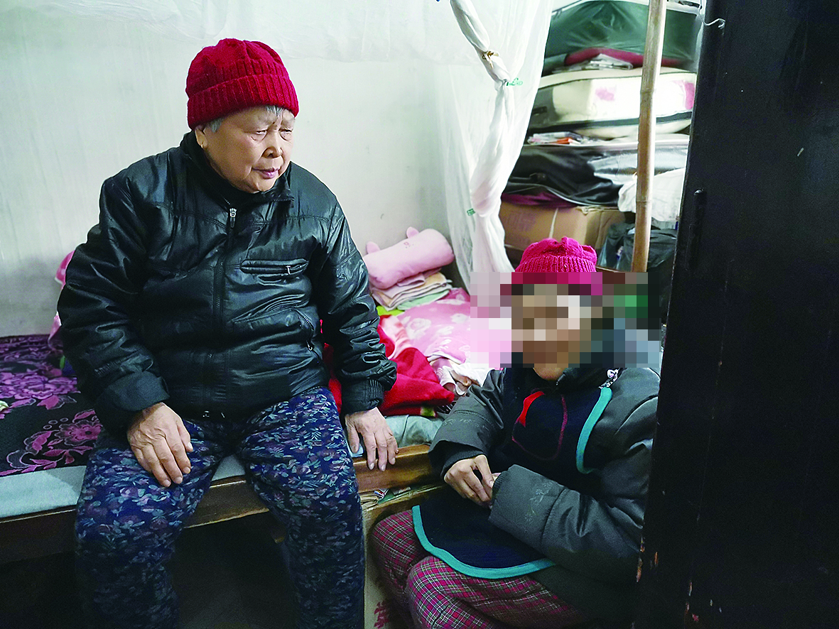 本报讯 (记者 姚时美)一间狭小的房间,就是蒋伟著的栖身之所。怕她烤火烧到自己,老母亲把烤火炉调到最低档,几乎贴墙放着。蒋伟著患小儿麻痹症,从小瘫痪,智力也比正常人低,五十多年来,母亲一直像照顾小孩一样呵护她。