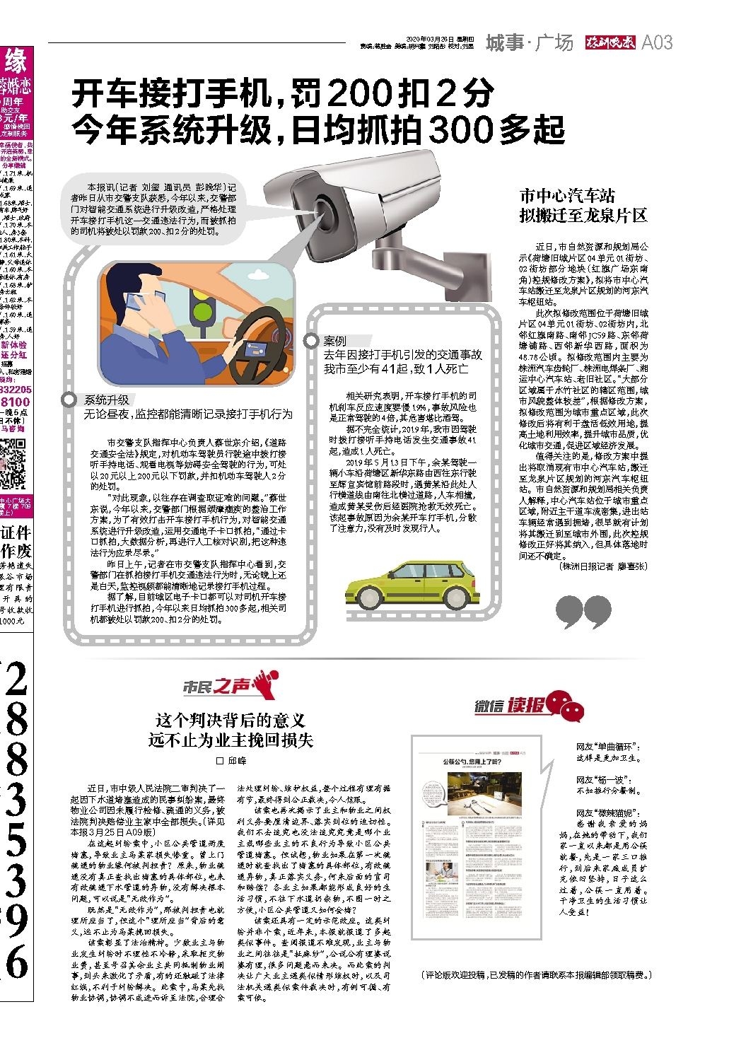 开车接打手机,罚200扣2分 今年系统升级,日均抓拍300多起