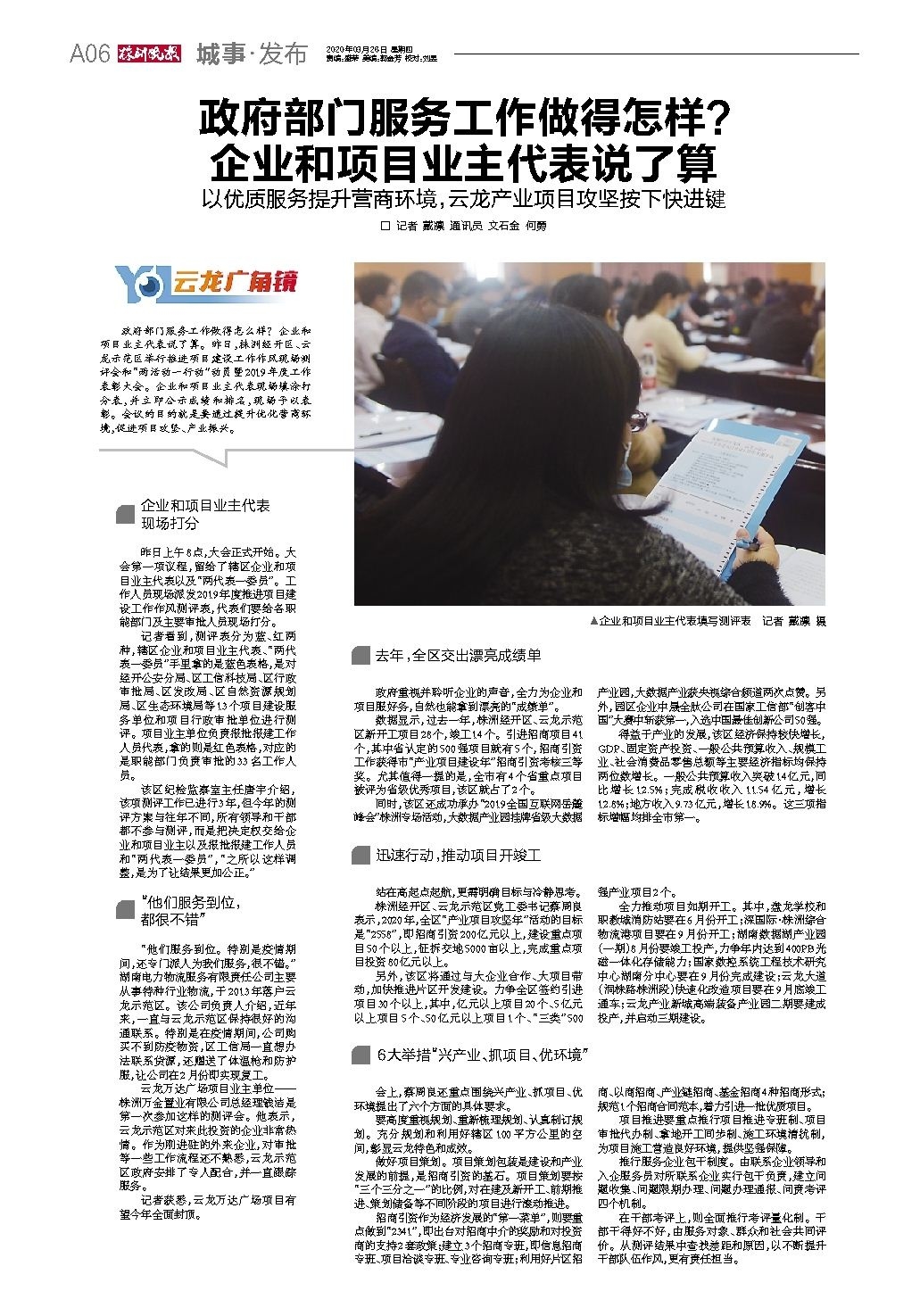 政府部门服务工作做得怎样? 企业和项目业主代表说了算