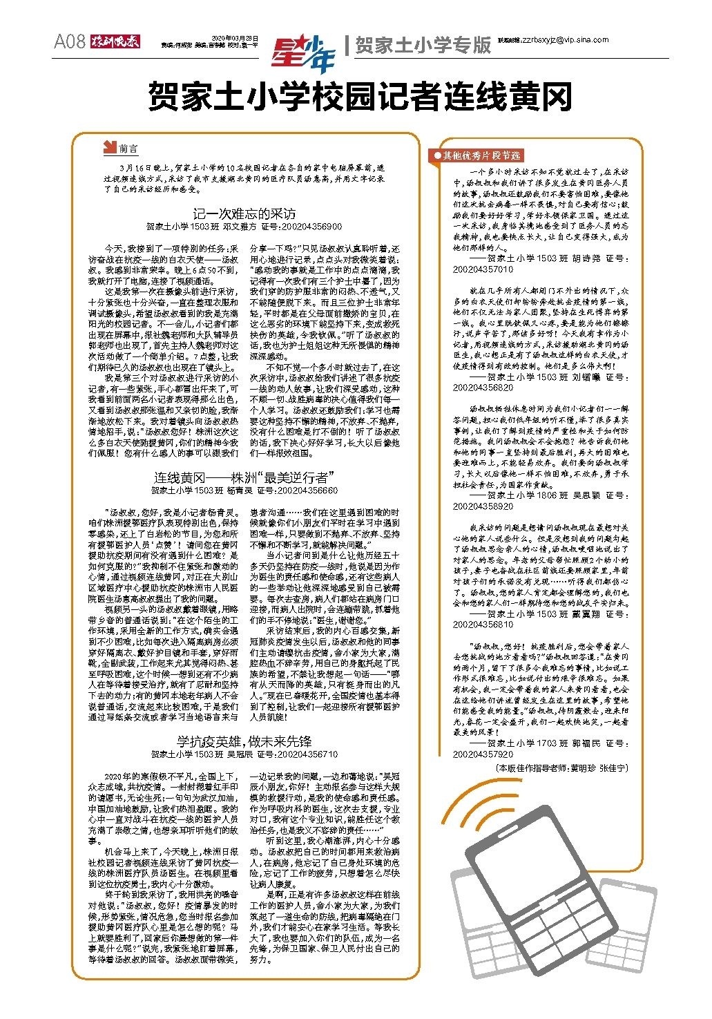 贺家土小学校园记者连线黄冈