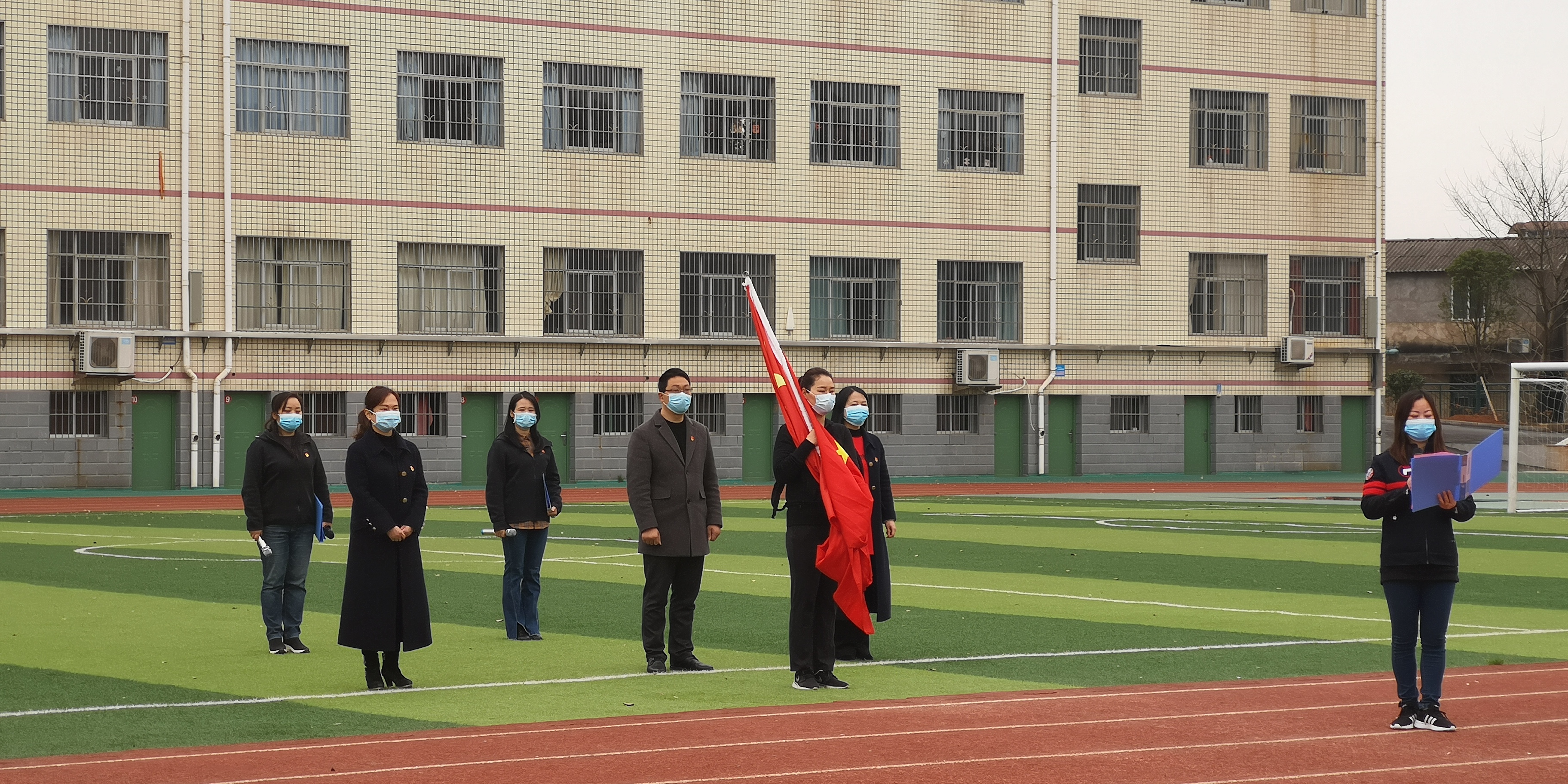 活动中,曙光学校党支部书记、校长郭巧玲,清水塘学校党支部书记、校长徐志敏,光明学校党支部书记、校长黄凤伟,曙光学校副校长唐映霞、光明学校副校长文芬,曙光学校政教主任聂穗,组成整齐的队伍,大踏步走向升旗台。仰望鲜艳的五星红旗徐徐升起,三校师生在屏幕前共同唱响国歌。同学们纷纷表示,激动的心情溢于言表,热血在沸腾,心潮在澎湃,似乎看到了在疫情抗战中许许多多感人的画面,感受到了旗帜的力量。