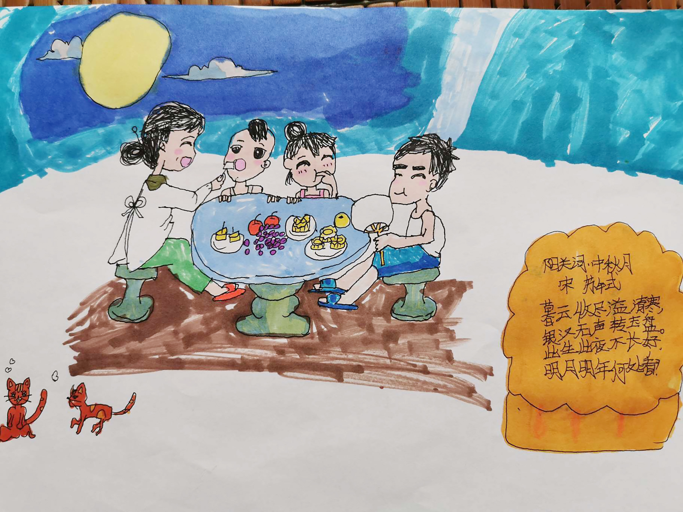 《中秋赏月》 红旗路小学1603班 张梓涵 证号:200108453680 ●绘画作品