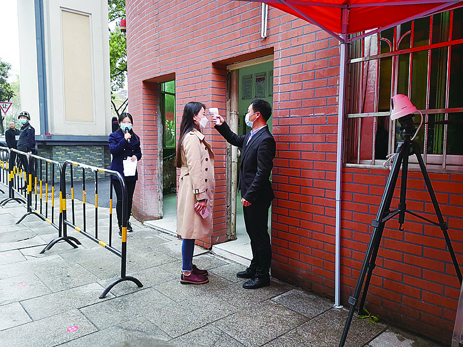 师生入校时必须经过健康询问和体温测量,教职员工还须出示“健康码”,显示“绿码”且身体无异常方可入校。报到当日禁止家长进入校园。