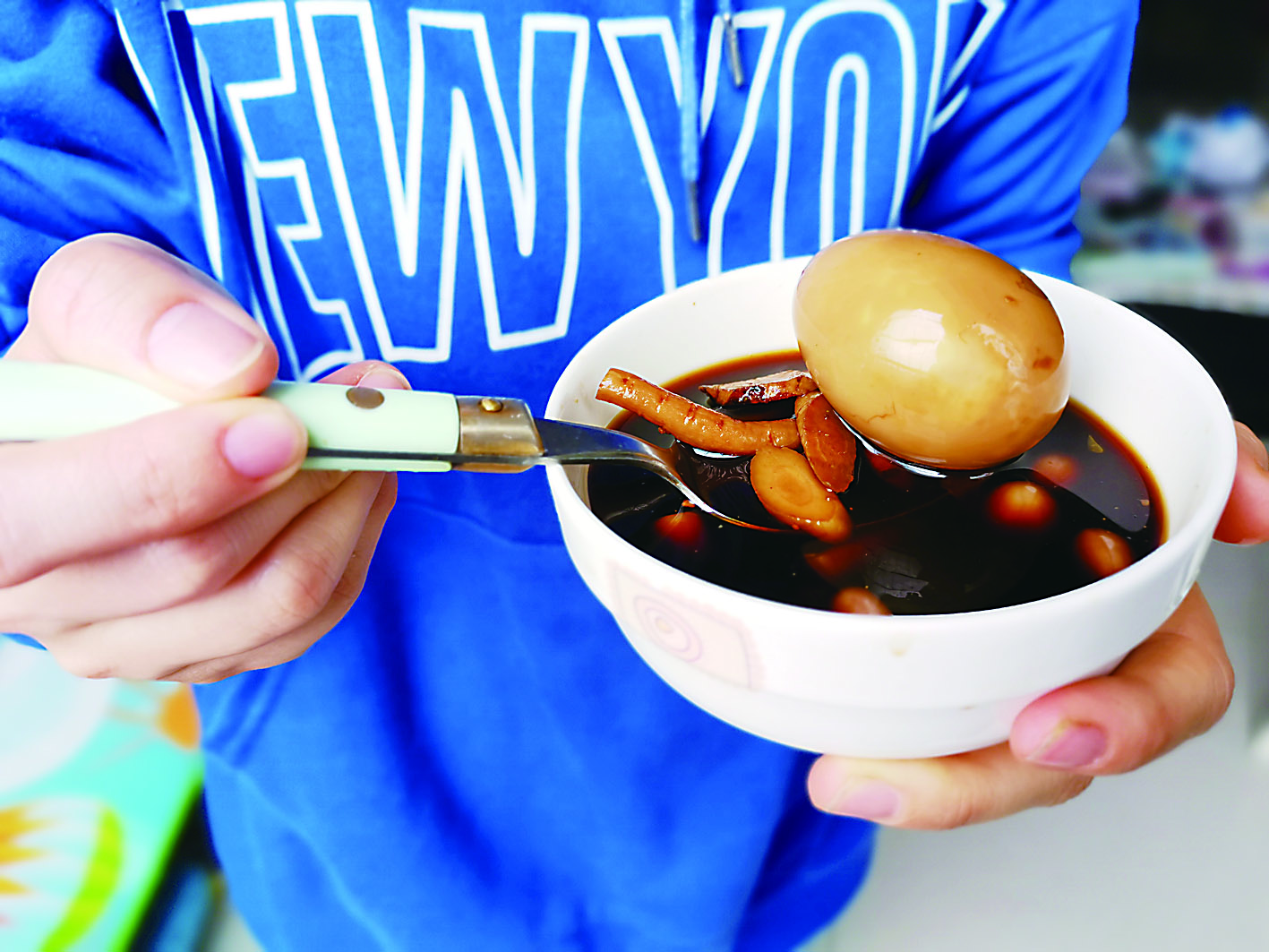 ▲市民烹制的地菜煮鸡蛋 记者 戴凛 摄