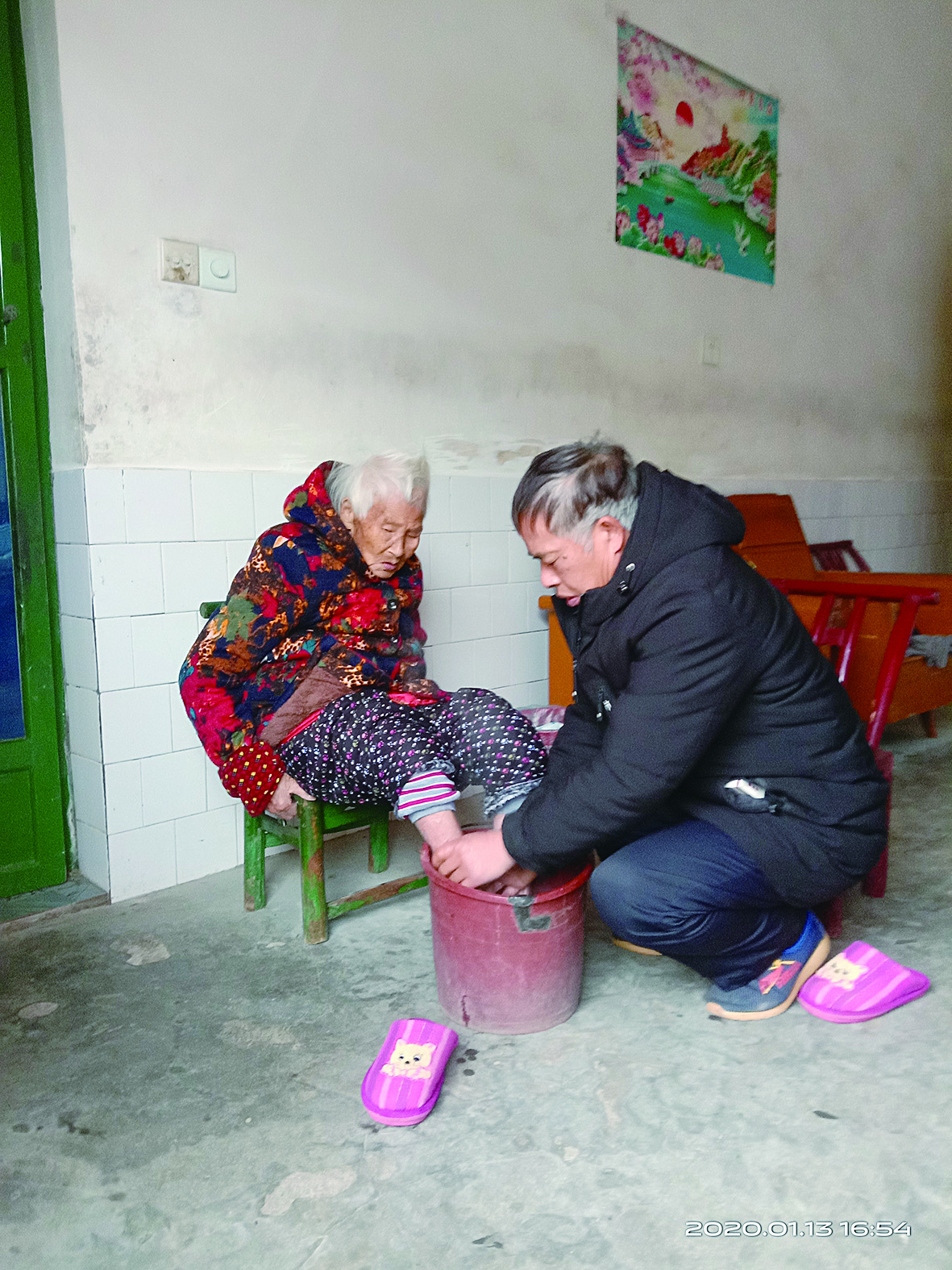 ▲吴敬坤无微不至地照顾母亲 受访者供图