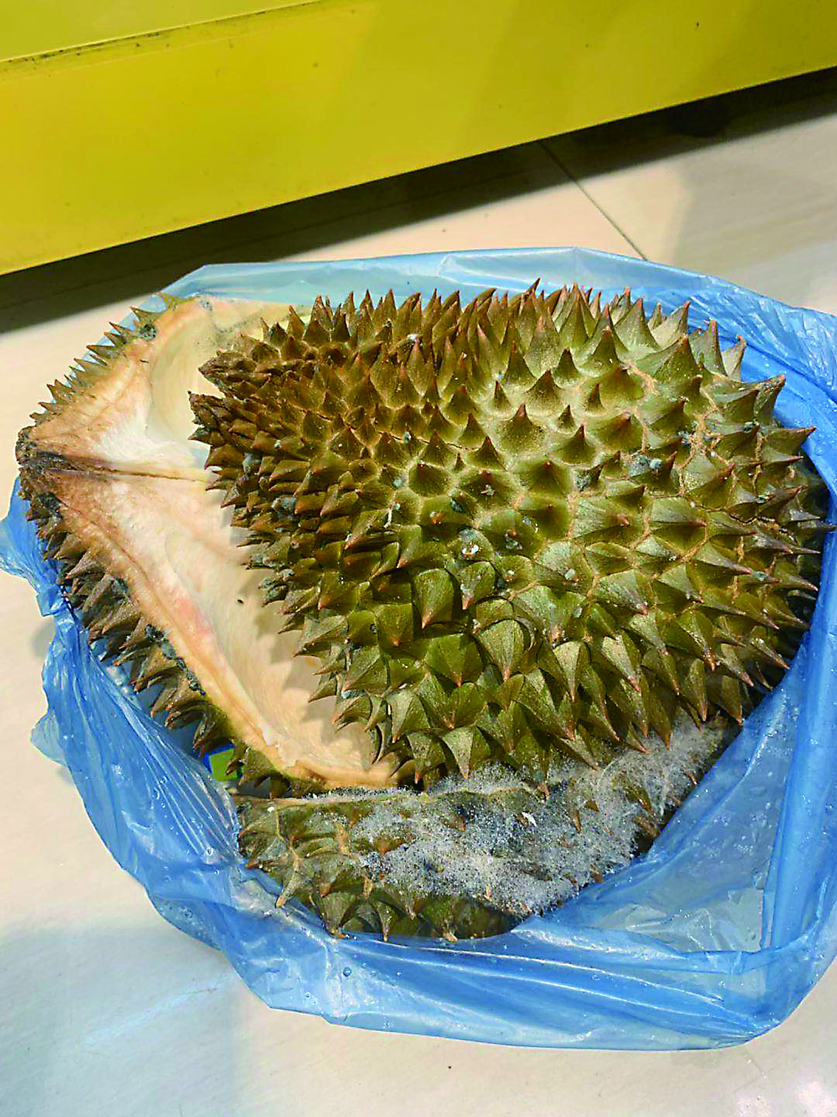 昨日,市民李女士拨打晚报新闻热线28829110反映:23日我在荷塘区某水果店购买了一个榴莲,回家后打开发现,这个榴莲已经发霉了,可店家不愿意退货。
