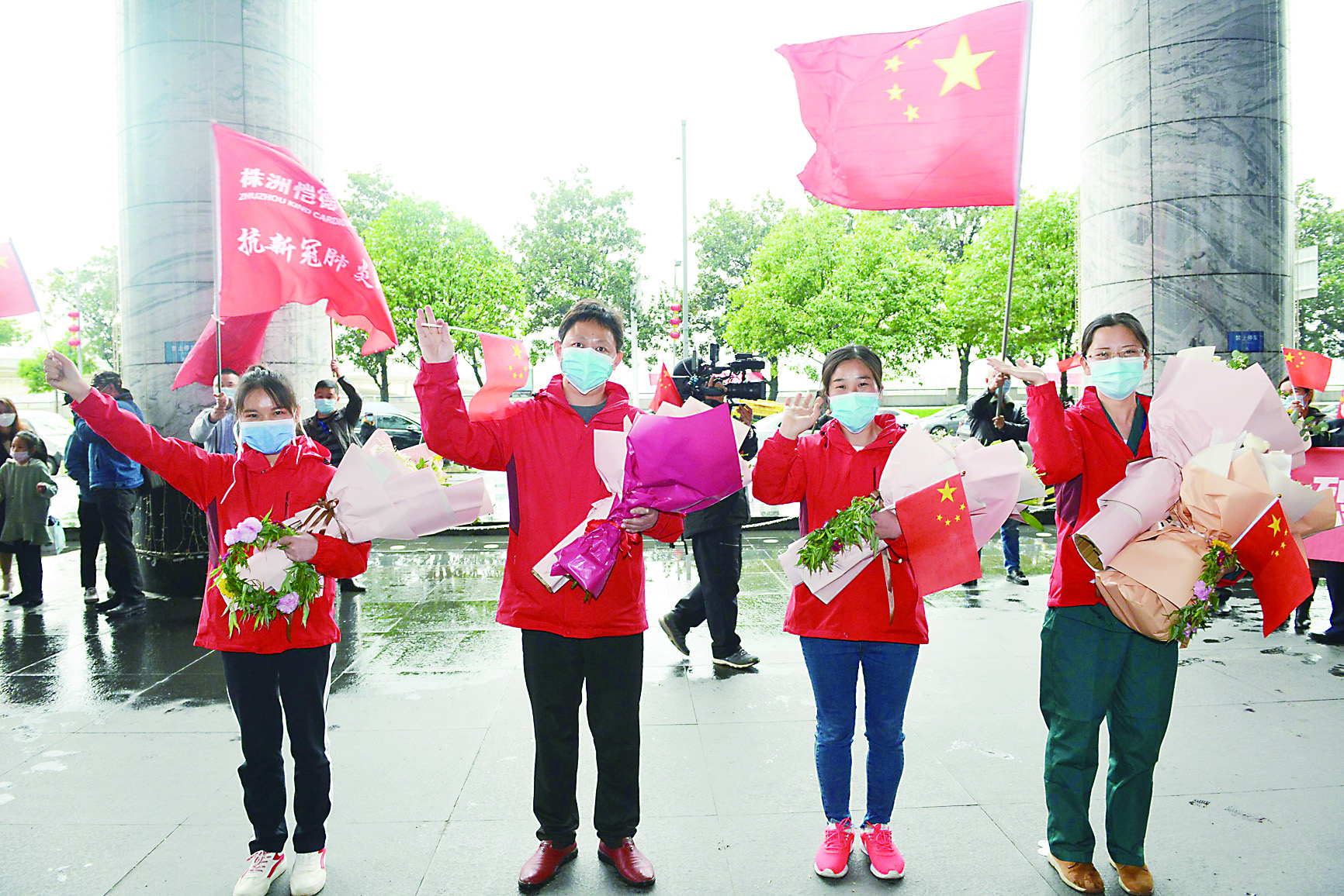 ▲四名医疗队员抵达株洲大汉希尔顿酒店 记者 谢慧 摄