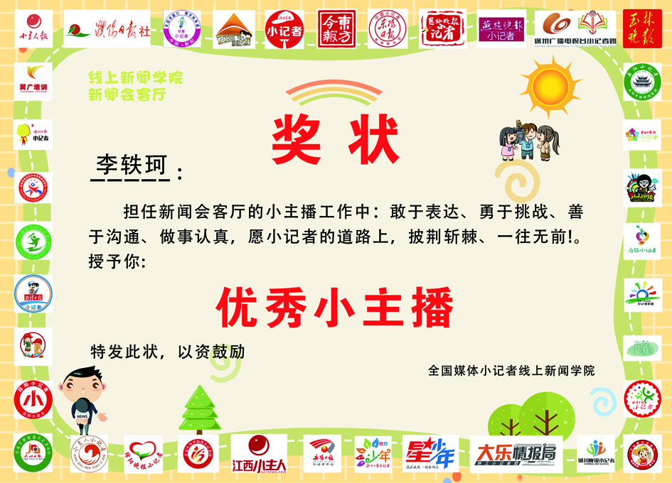 ▲株洲日报社校园记者在“线上新闻学院”获得的电子奖状