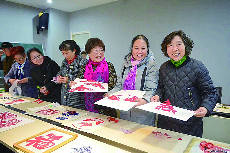 带着妈妈上大学,这是剪纸班的现象和佳话。班长刘敏和学员吴素芳都把妈妈带来上课,“刚开始,老人家还有顾虑,觉得和一群老年人在一起,会不会让自己显得更老?第一次走进教室,发现这里男学员精气神十足,女学员笑靥如花,更有许多不到50岁的学员,青春的朝气就这样又回来了,离群的孤雁也找到了雁群。”刘敏介绍说。