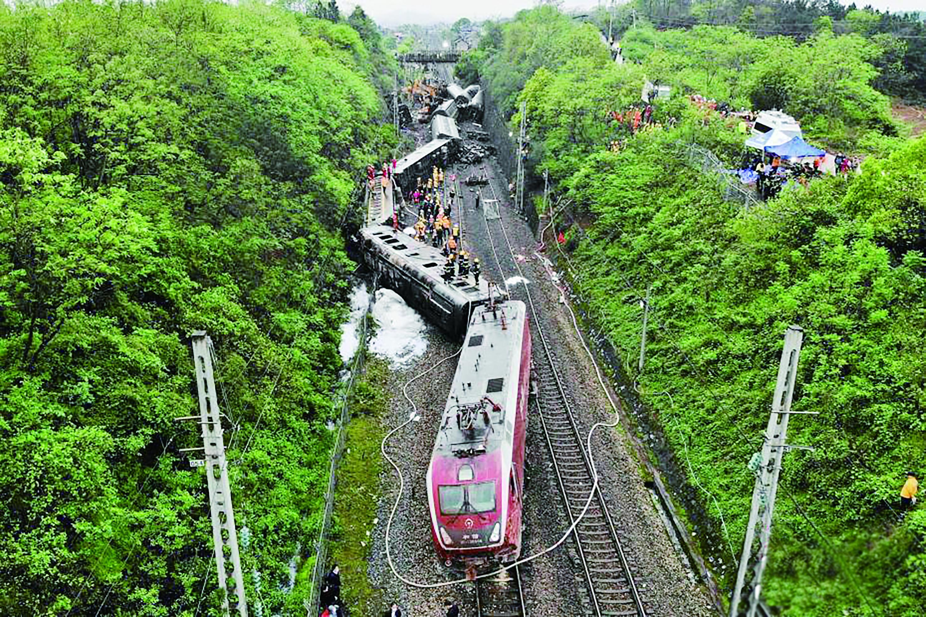 据广铁集团介绍,发现塌方后,T179次列车司机采取紧急制动措施,列车撞上塌方山体,导致机后第一节发电车起火,第二至六节车厢脱线倾覆。经铁路部门和地方消防官兵扑救,发生事故的列车发电车火灾已扑灭,铁路部门安排车上部分旅客转乘高铁。