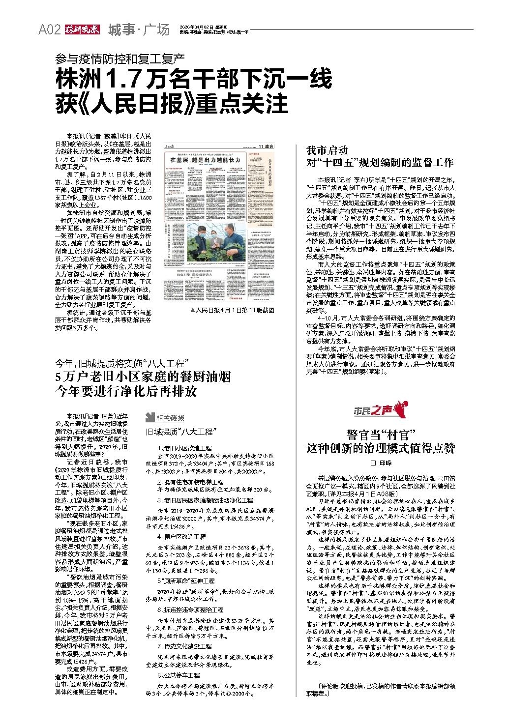 株洲1.7万名干部下沉一线 获《人民日报》重点关注