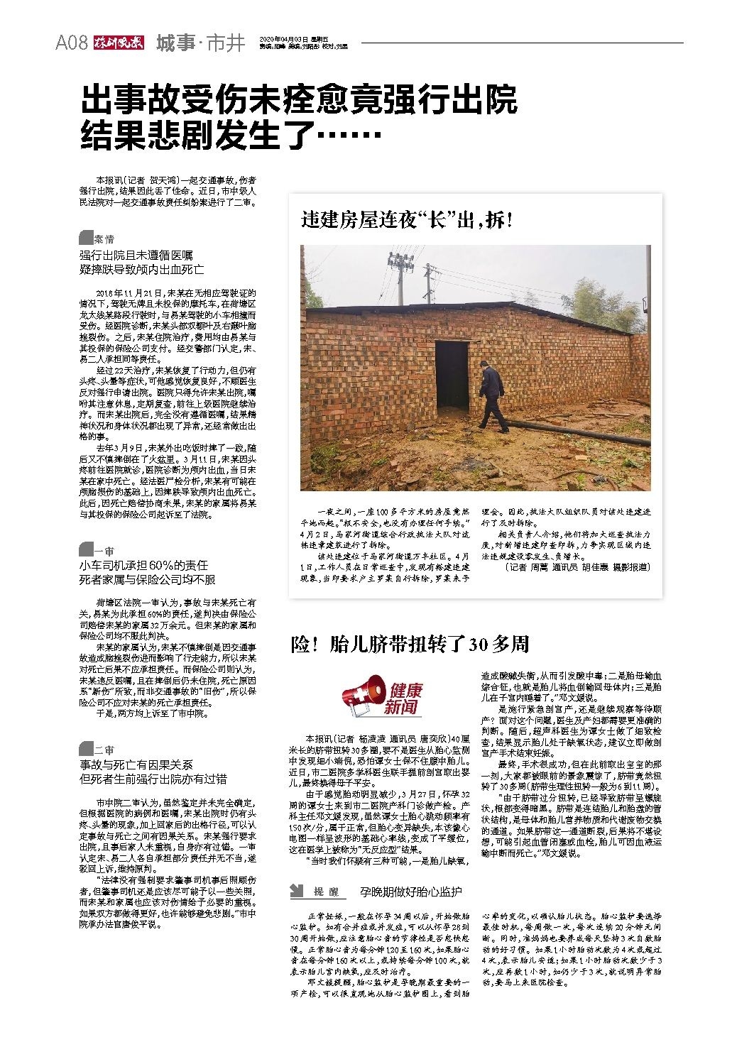 出事故受伤未痊愈竟强行出院 结果悲剧发生了……
