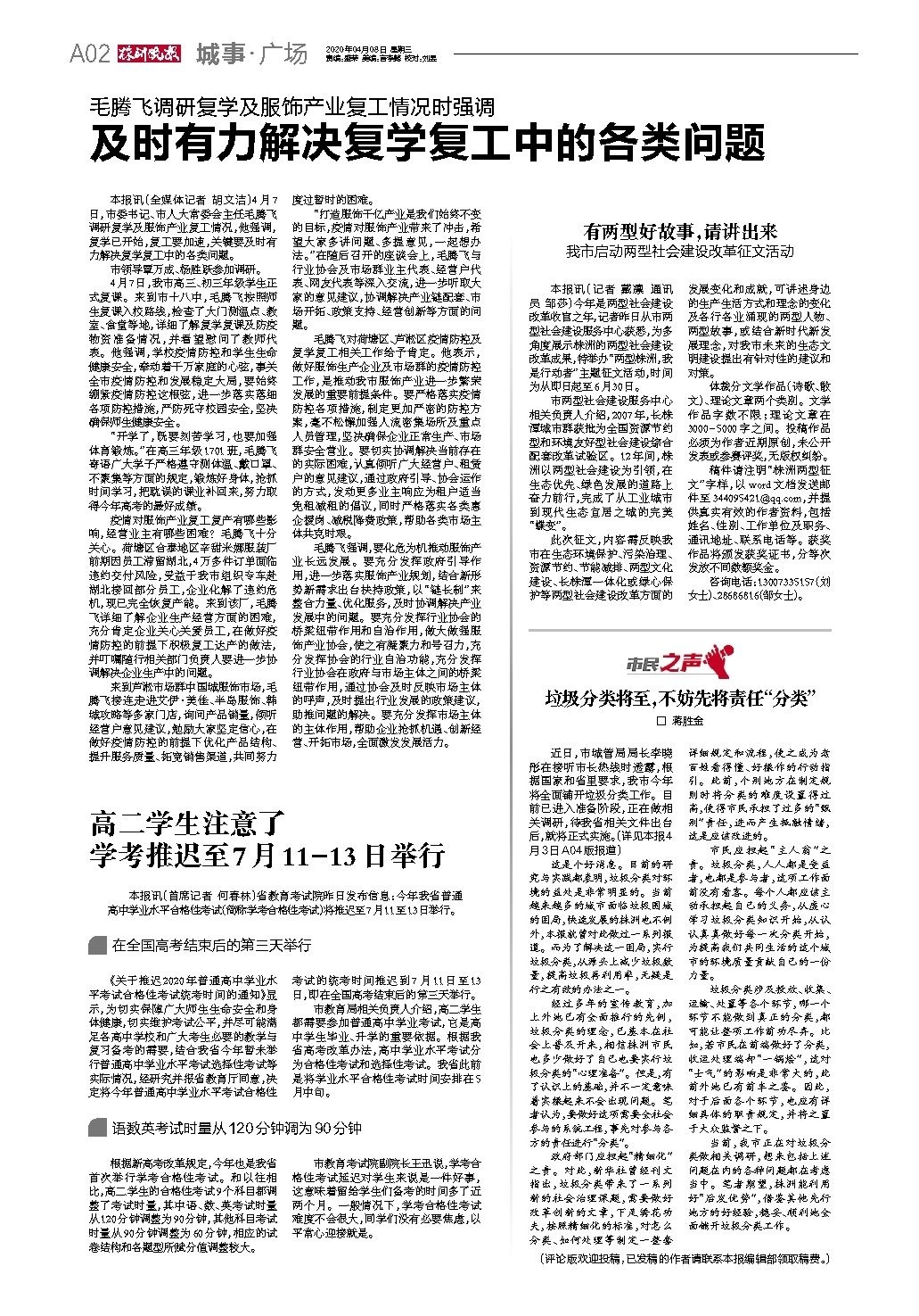 2020年04月08日《株洲晚报》