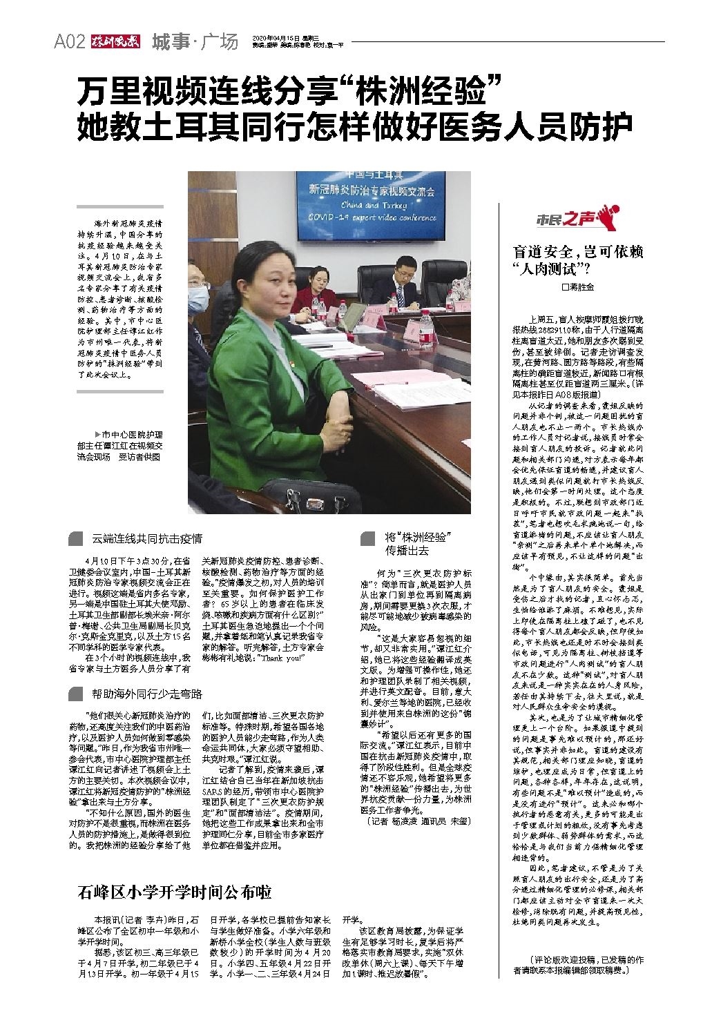 万里视频连线分享“株洲经验” 她教土耳其同行怎样做好医务人员防护
