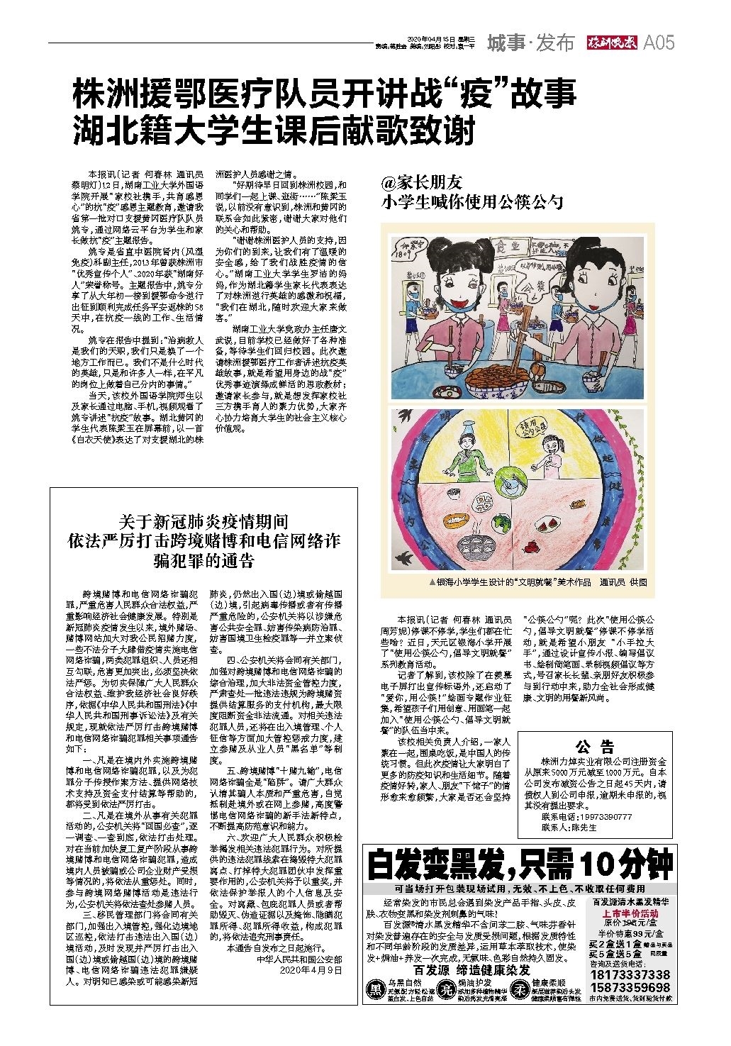 株洲援鄂医疗队员开讲战“疫”故事湖北籍大学生课后献歌致谢