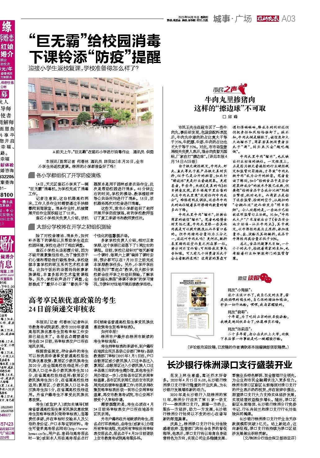 “巨无霸”给校园消毒 下课铃添“防疫”提醒