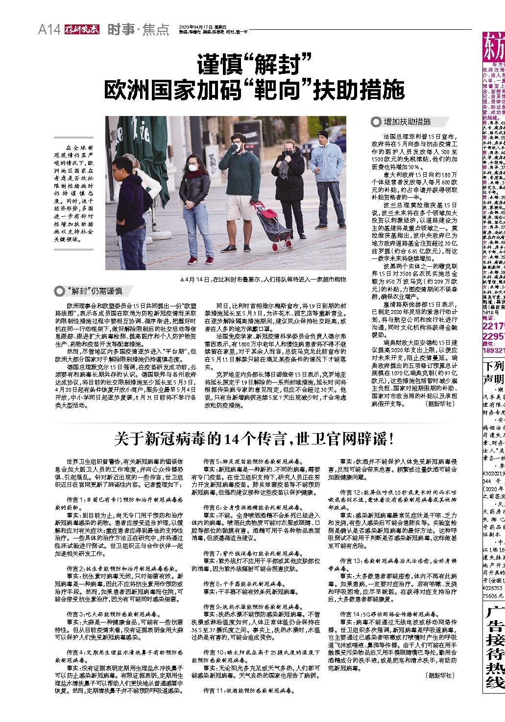 谨慎“解封” 欧洲国家加码“靶向”扶助措施