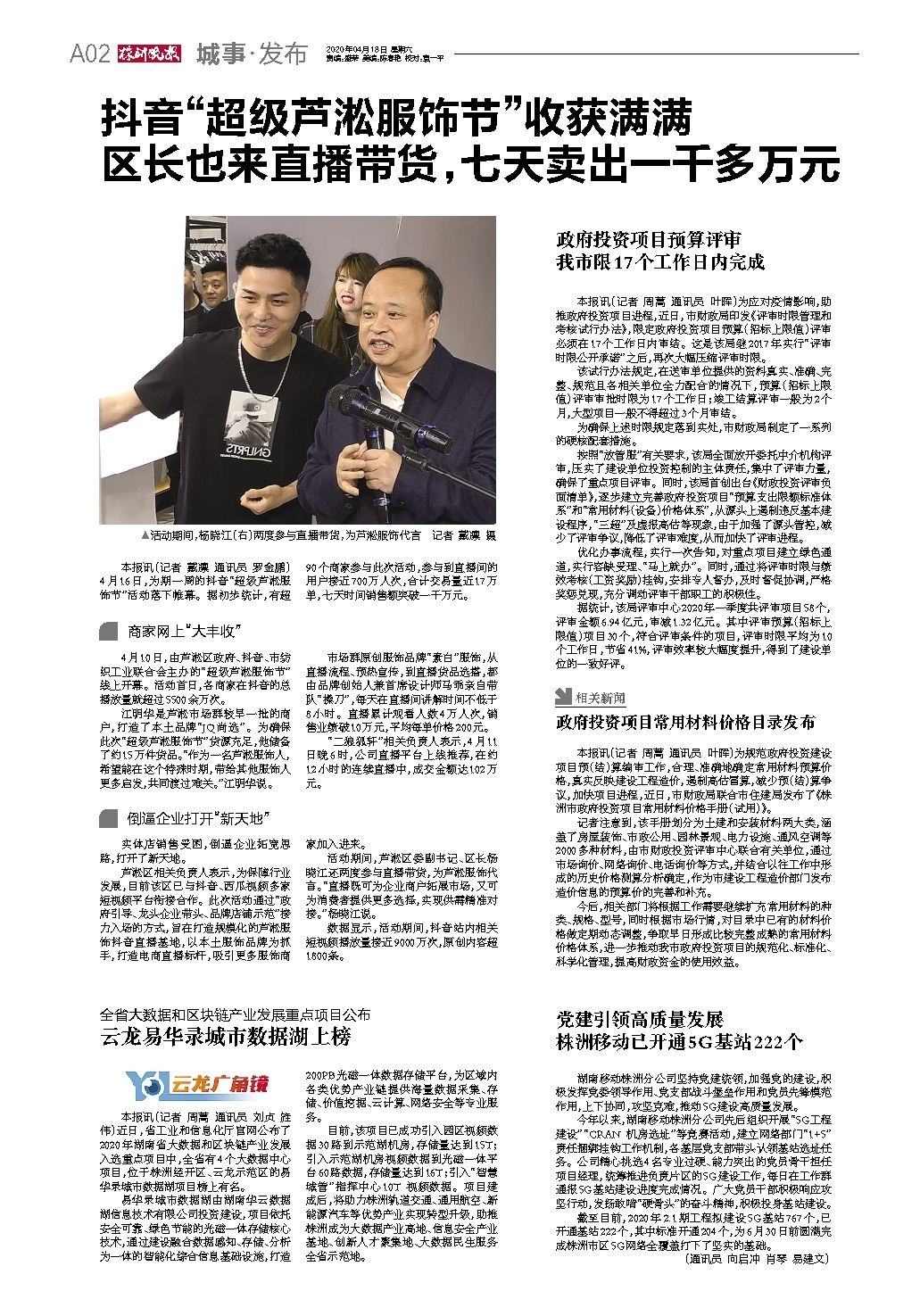 抖音“超级芦淞服饰节”收获满满 区长也来直播带货,七天卖出一千多万元