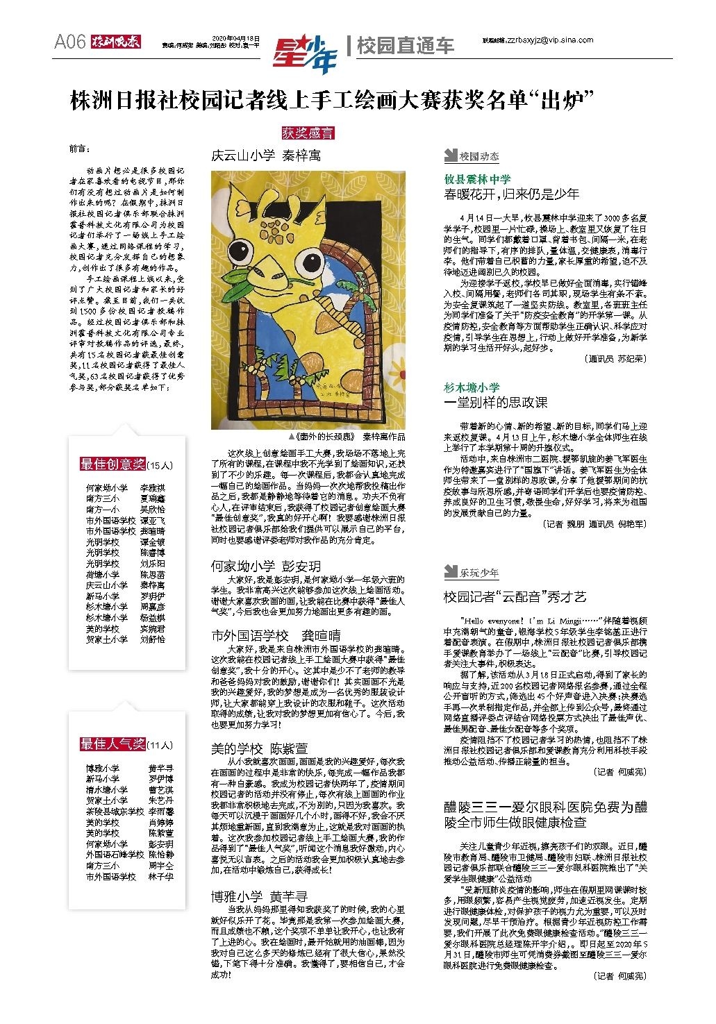 株洲日报社校园记者线上手工绘画大赛获奖名单“出炉”