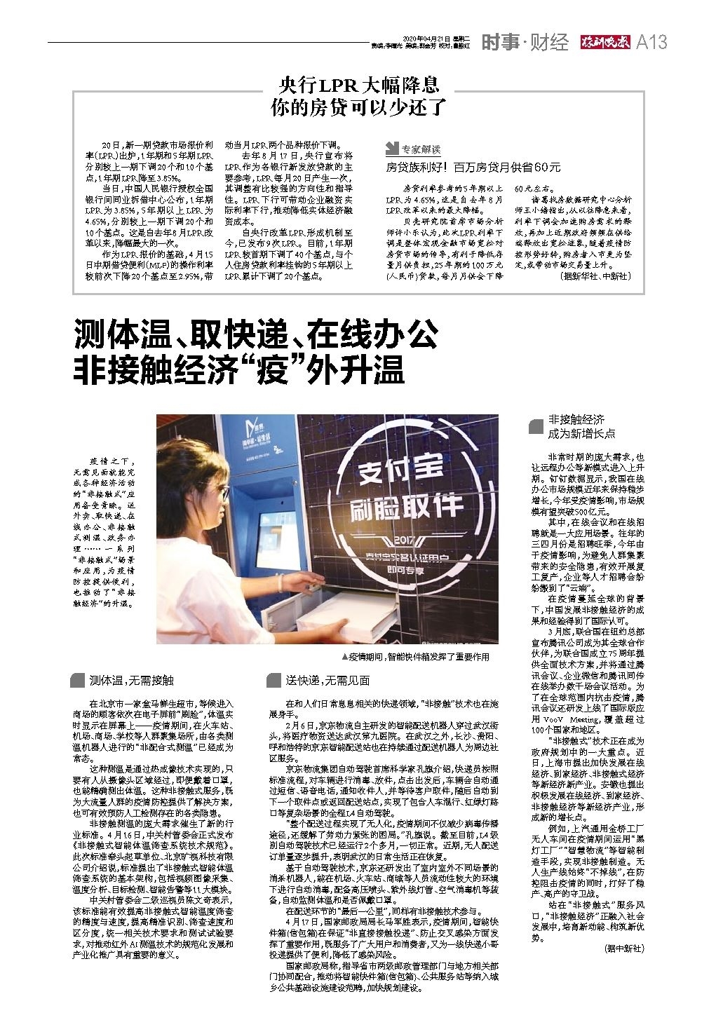 测体温、取快递、在线办公 非接触经济“疫”外升温