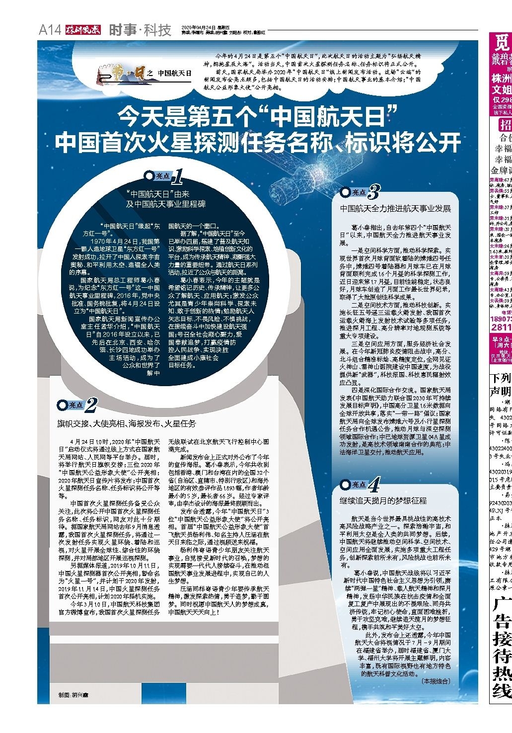 今天是第五个“中国航天日” 中国首次火星探测任务名称、标识将公开