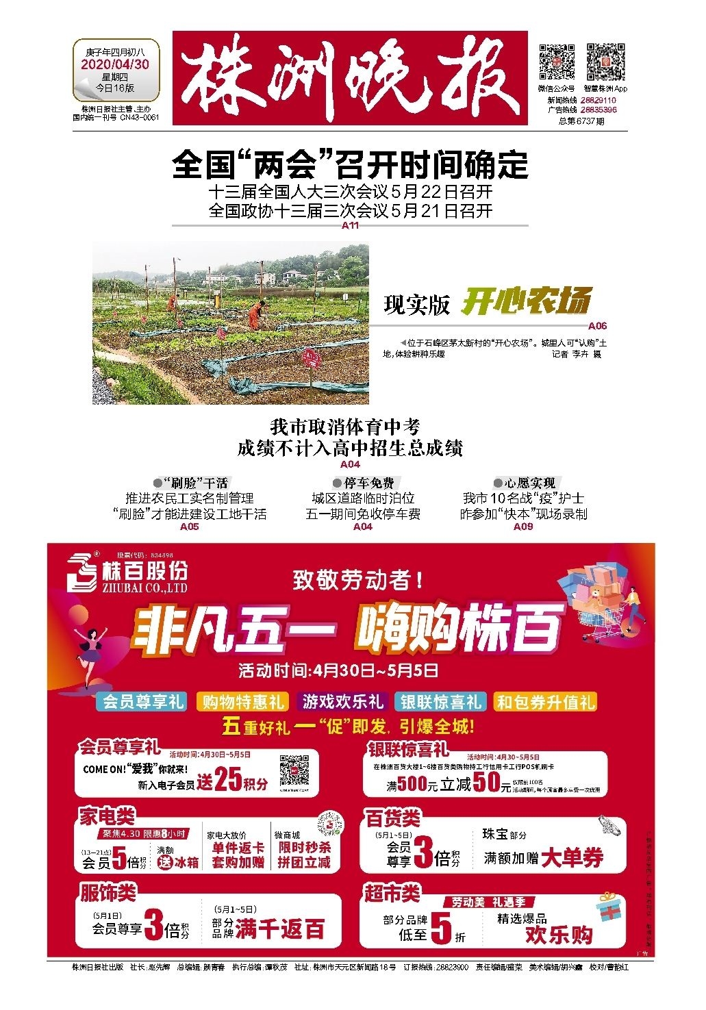 2020年04月30日《株洲晚报》