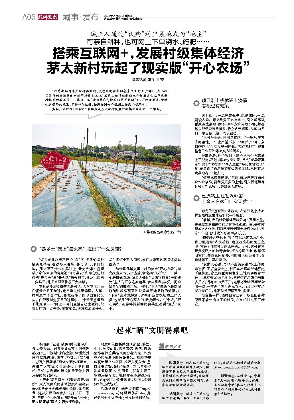 搭乘互联网+,发展村级集体经济 茅太新村玩起了现实版“开心农场”首席记者 李卉 文/图
