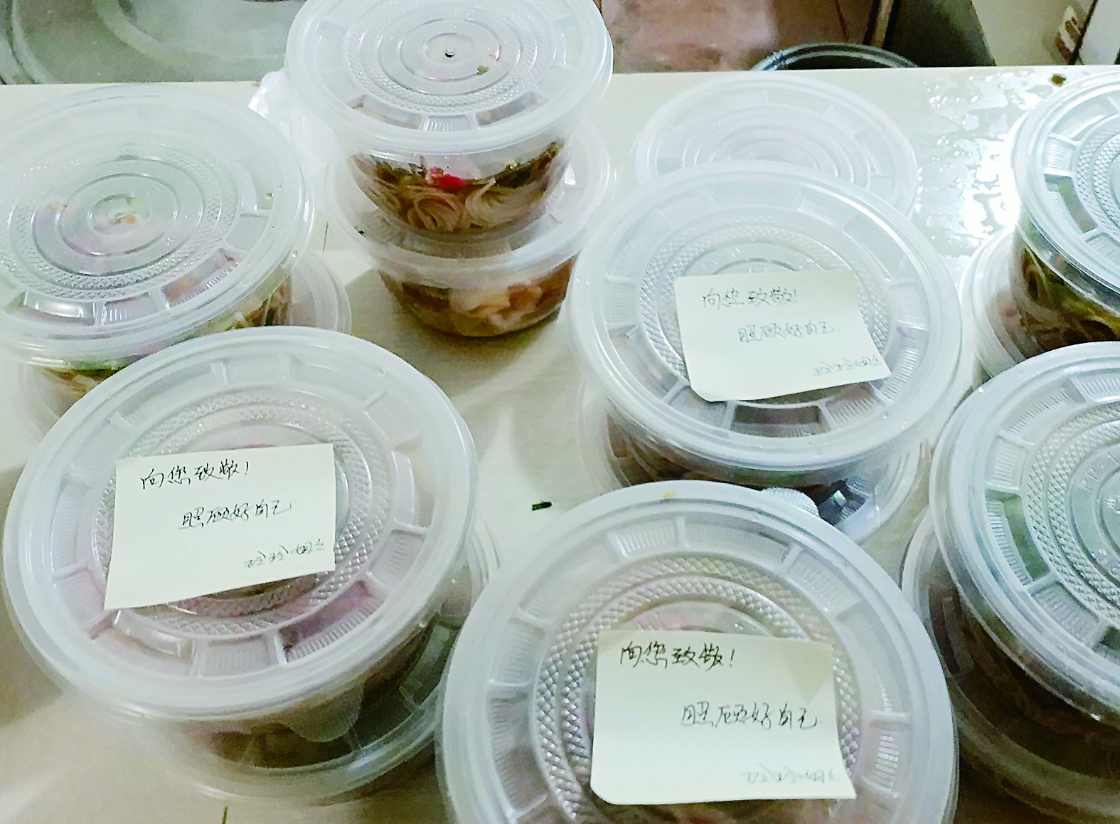 ▲在为医护人员准备的早餐上,刘智玲还写下祝福语 受访者供图
