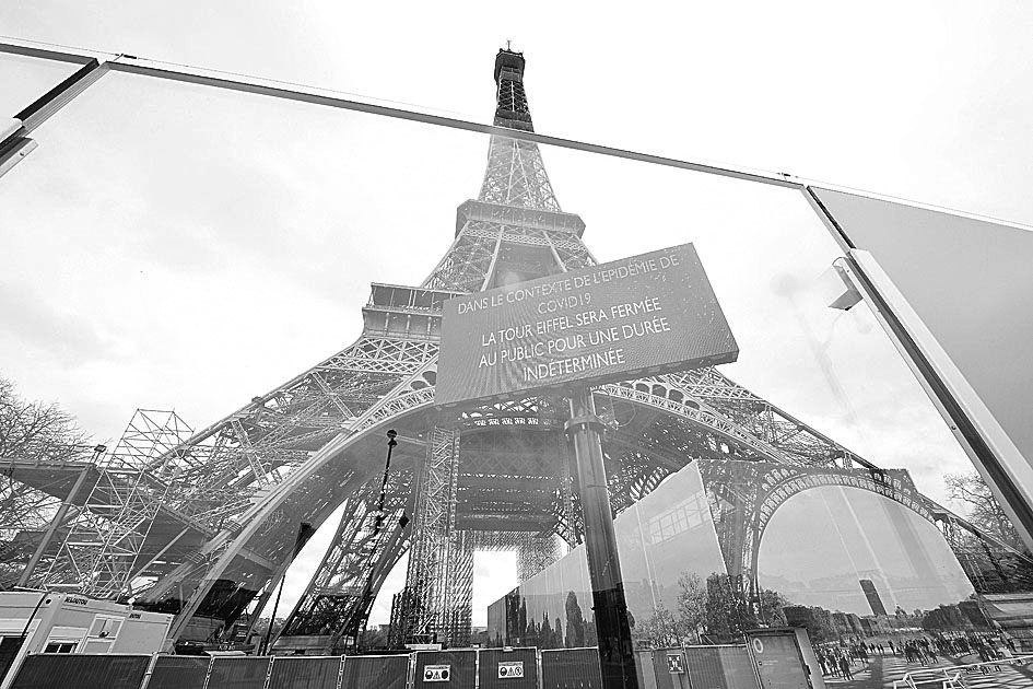 ▲法国巴黎,埃菲尔铁塔下竖立着“因新冠肺炎疫情而无限期关闭”的告示牌 据新华社