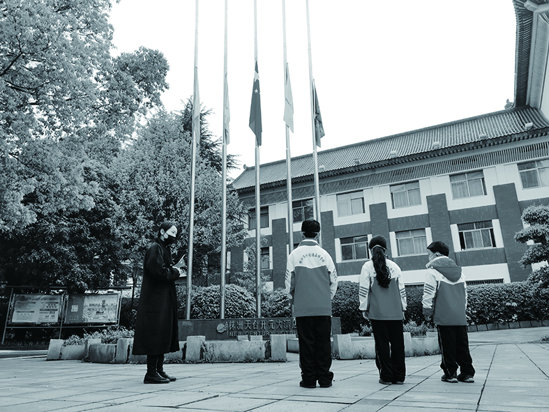 昨天早上,孩子们刚一起床,石女士就和他们讲述清明节的来历,说起革命先烈的故事,解释为什么要降半旗。随后,又一同观看央视播出的全国各地纪念活动。