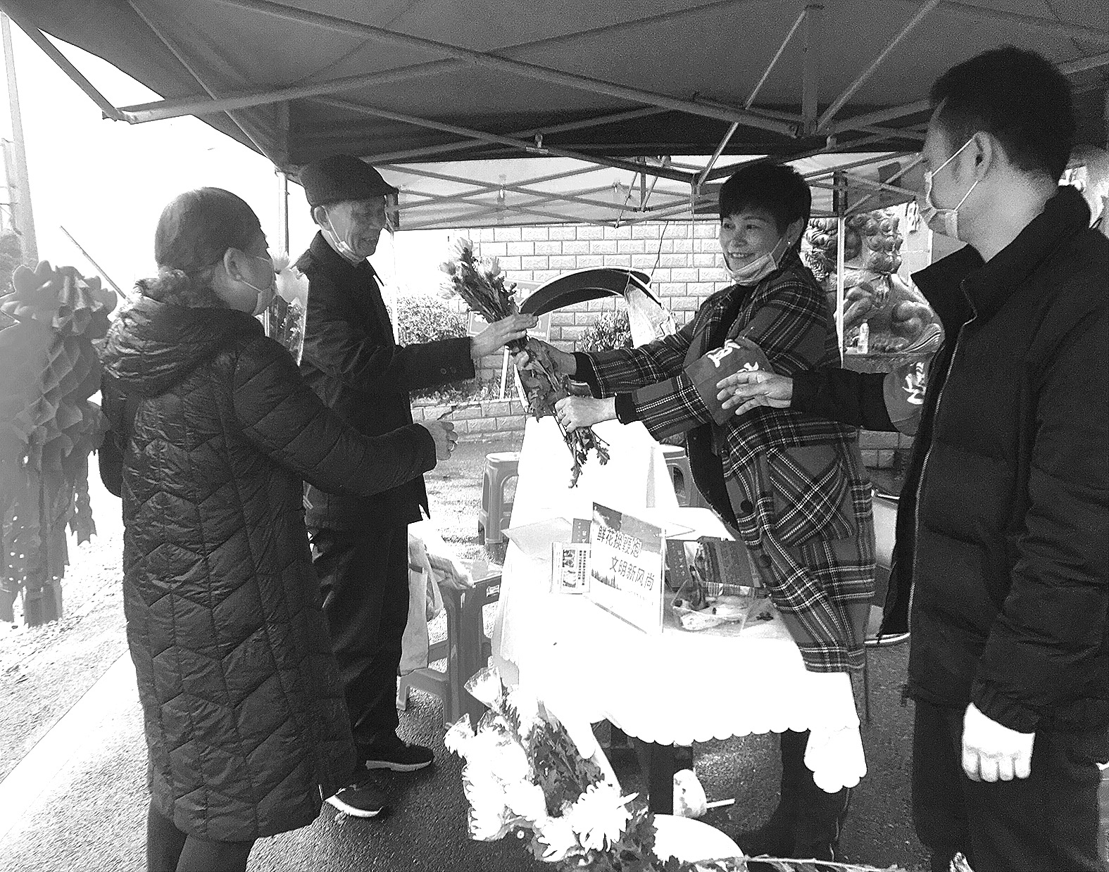 ▲4月3日,工作人员用菊花交换祭扫市民手中的鞭炮,倡导文明祭扫新风尚 株洲日报记者 刘平 摄