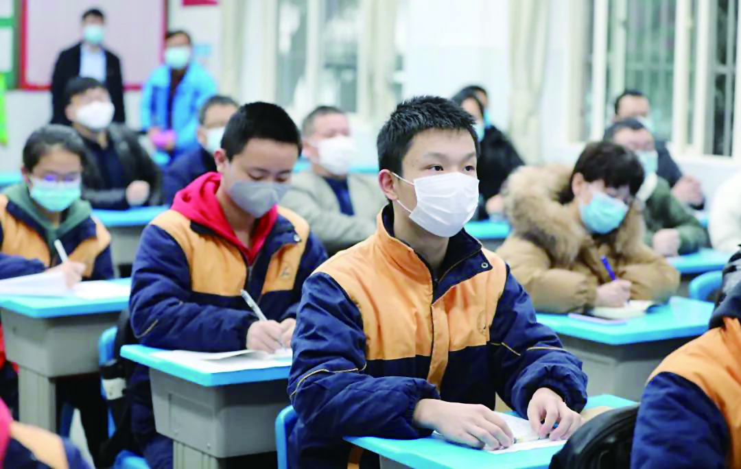 ▲3日,景炎学校组织学生模拟复学上课 通讯员供图