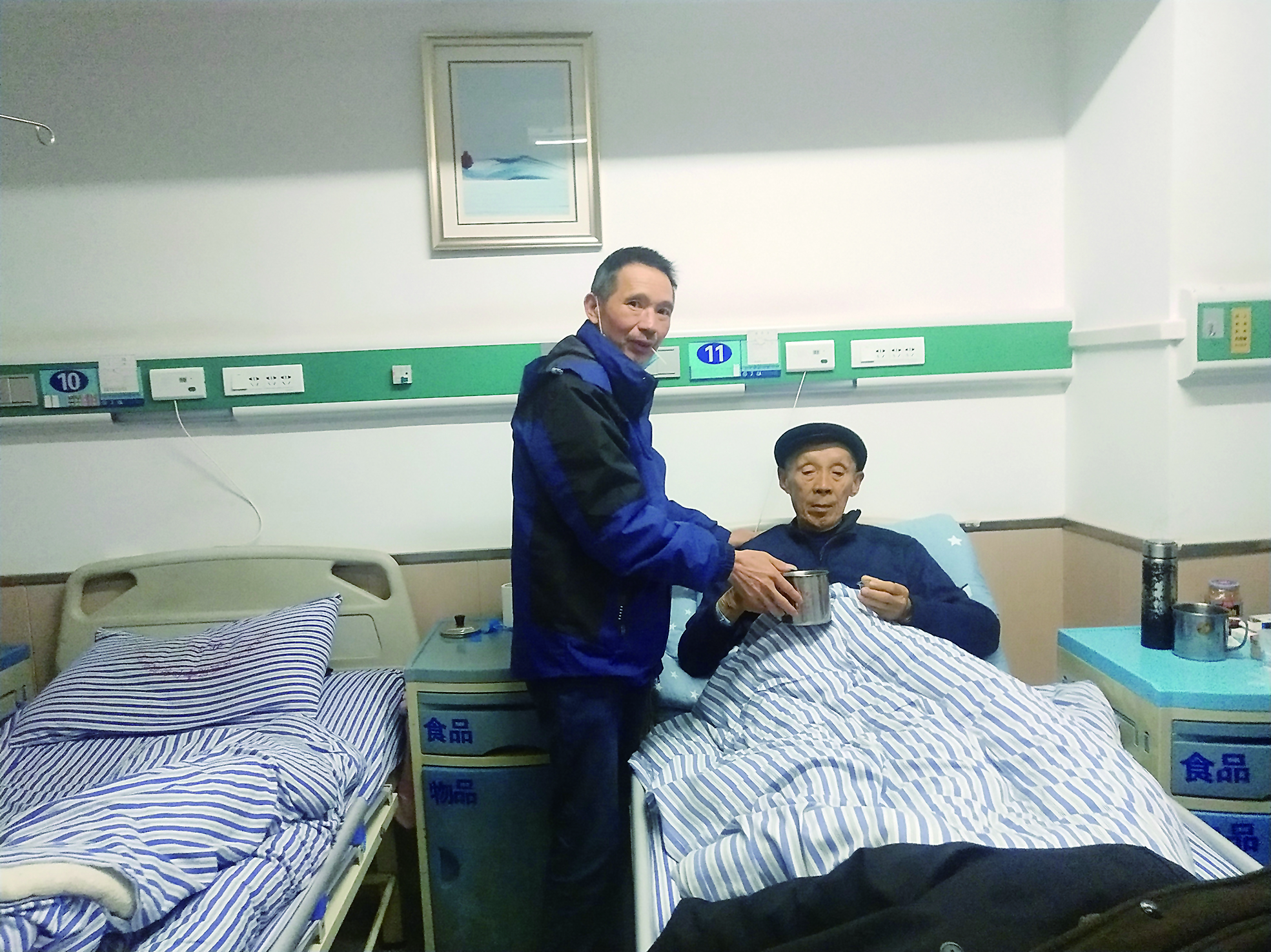▲苏兴无在医院照顾叔叔 通讯员供图