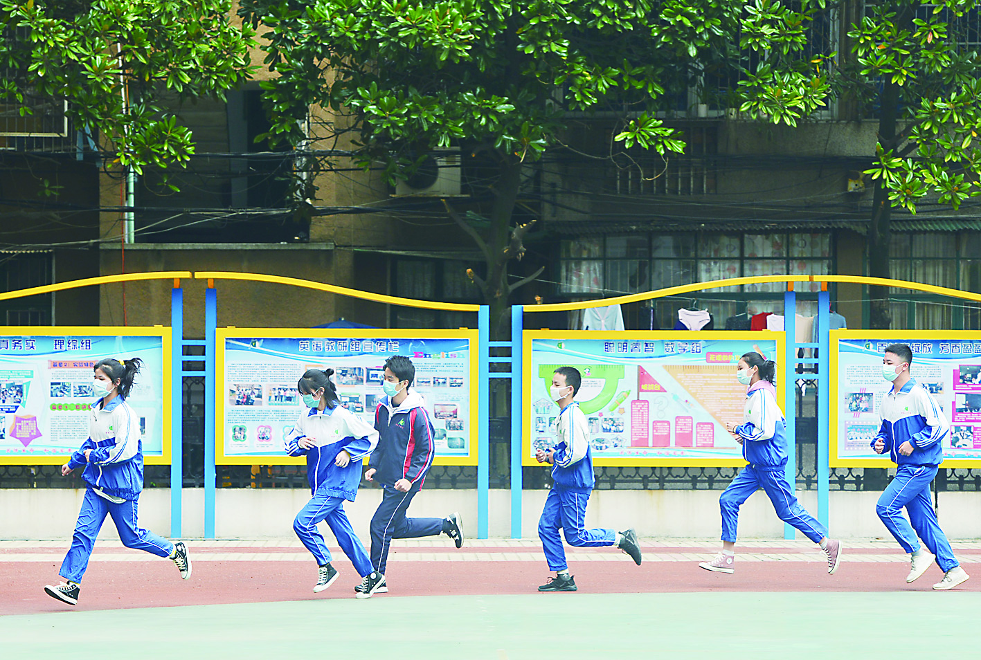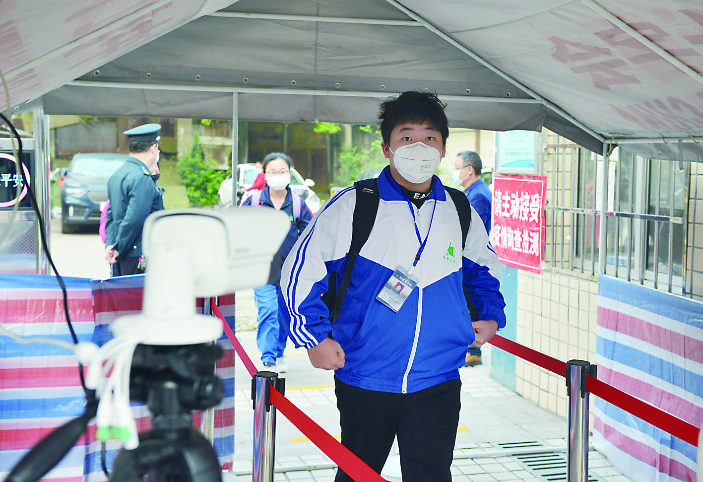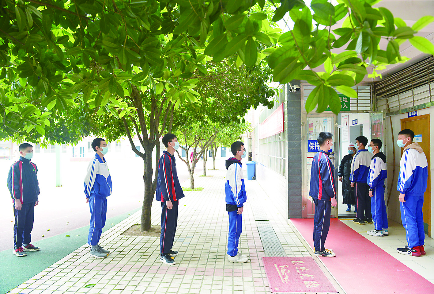 校园里的一切又是那么新鲜。学生们戴着口罩、接受体温检测后才能进入校园;教室里的垃圾桶、扫帚已被集中放在教室外;饭菜送到了班上……