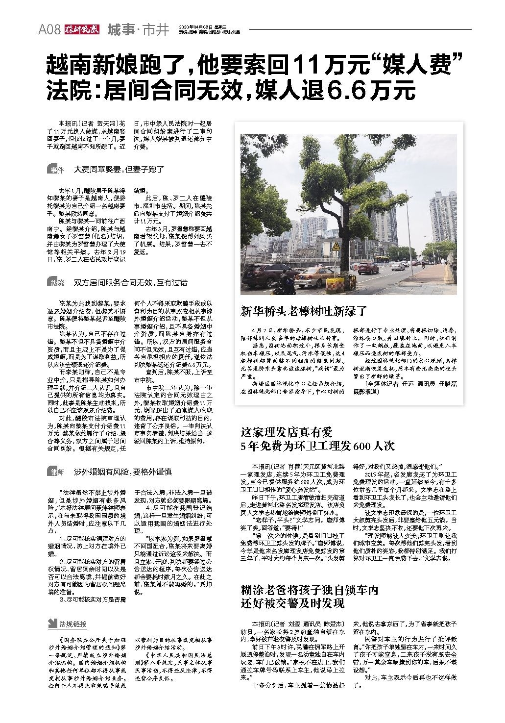 本报讯(记者 肖蓉)天元区黄河北路一家理发店,连续5年为环卫工免费理发,至今已提供服务约600人次,成为环卫工口口相传的“爱心美发站”。