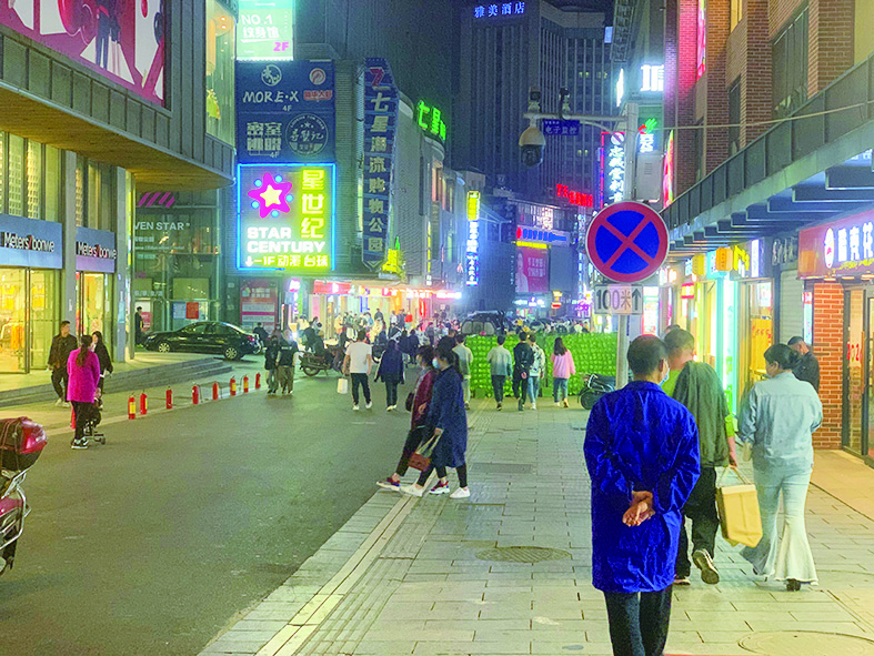 ▲芦淞区引入“路长制”打造城市管理“样板街”,钟鼓岭步行街市容变得清爽 记者 伍靖雯 摄