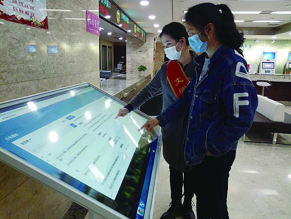 ▲荷塘区政务服务中心工作人员指导市民办事